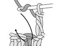 This stitch is worked in the row below. Yarn over and insert hook from front to back around post in the stitch below. Complete the double crochet stitch as usual.